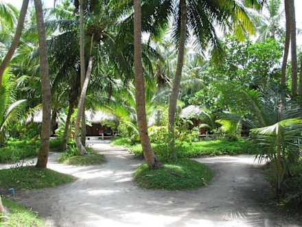 versteckt im Grün die aus Holz gebauten Beach Villen