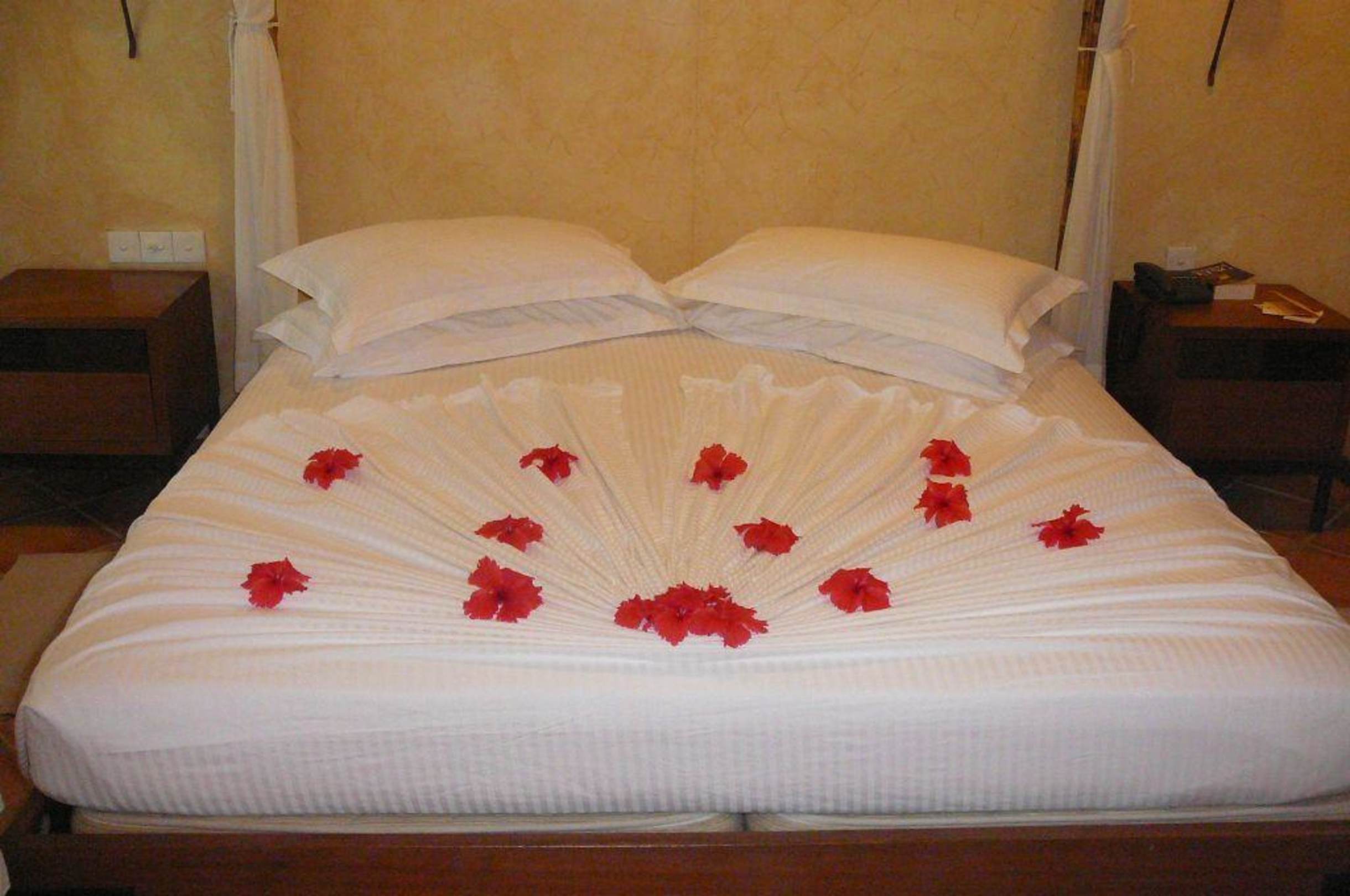 Dekoration des Bettes am Abend Kuramathi Maldives