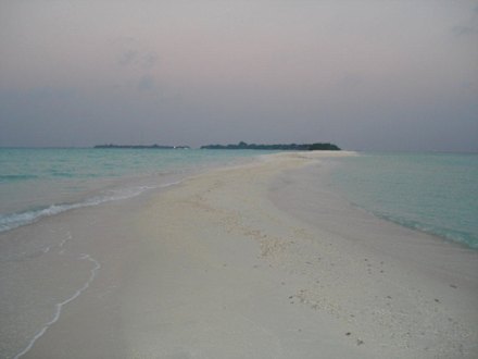 Blick vom Ende der Sandbank auf Kuramathi