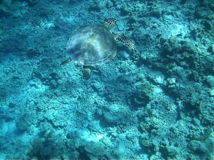 Mit etwas Glück trifft man beim Schnorcheln auf Wasserschildkröten.