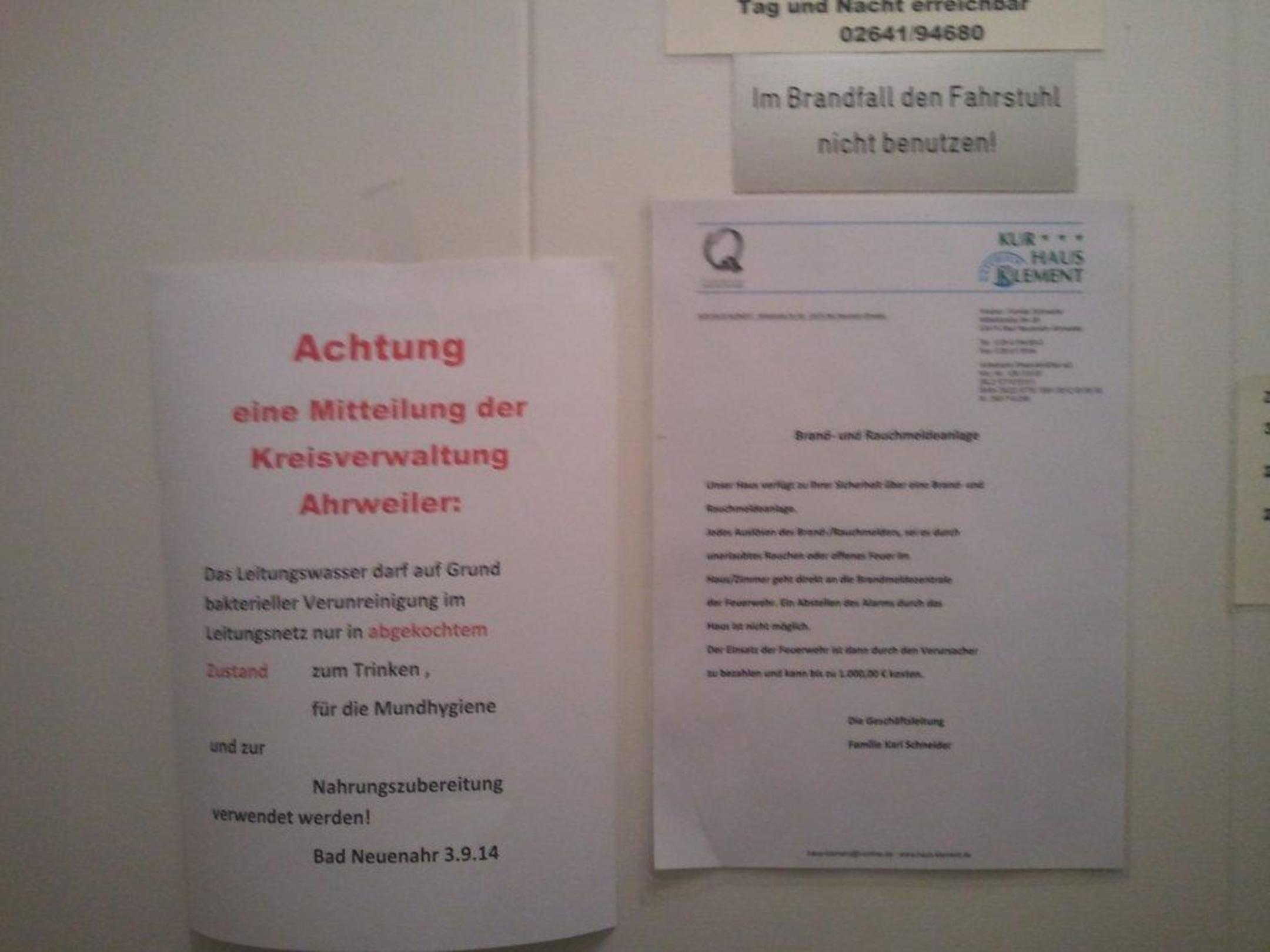 Belehrung im Aufzug  Kurhaus Klement