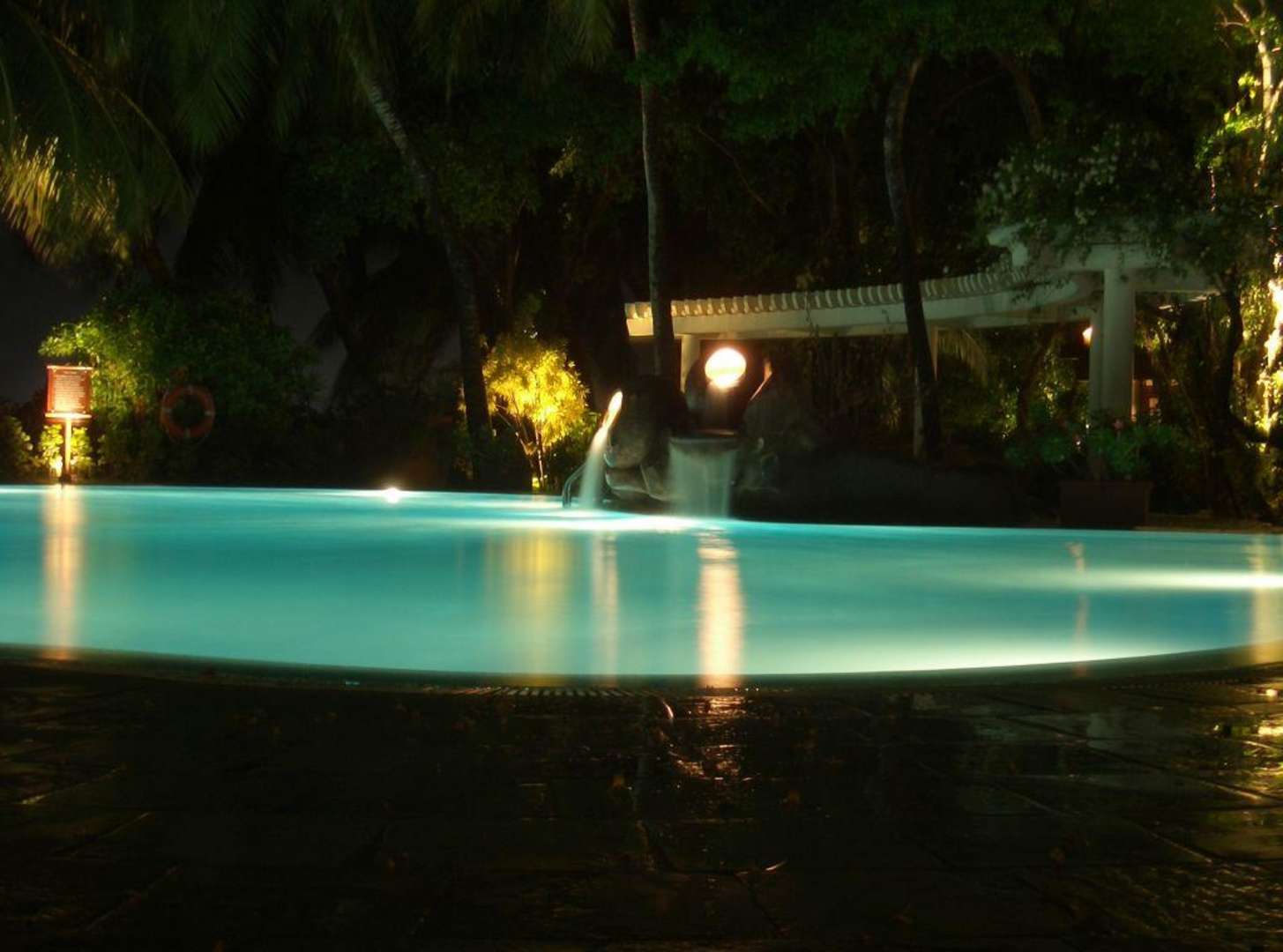 Der große Pool im Kurumba am Abend