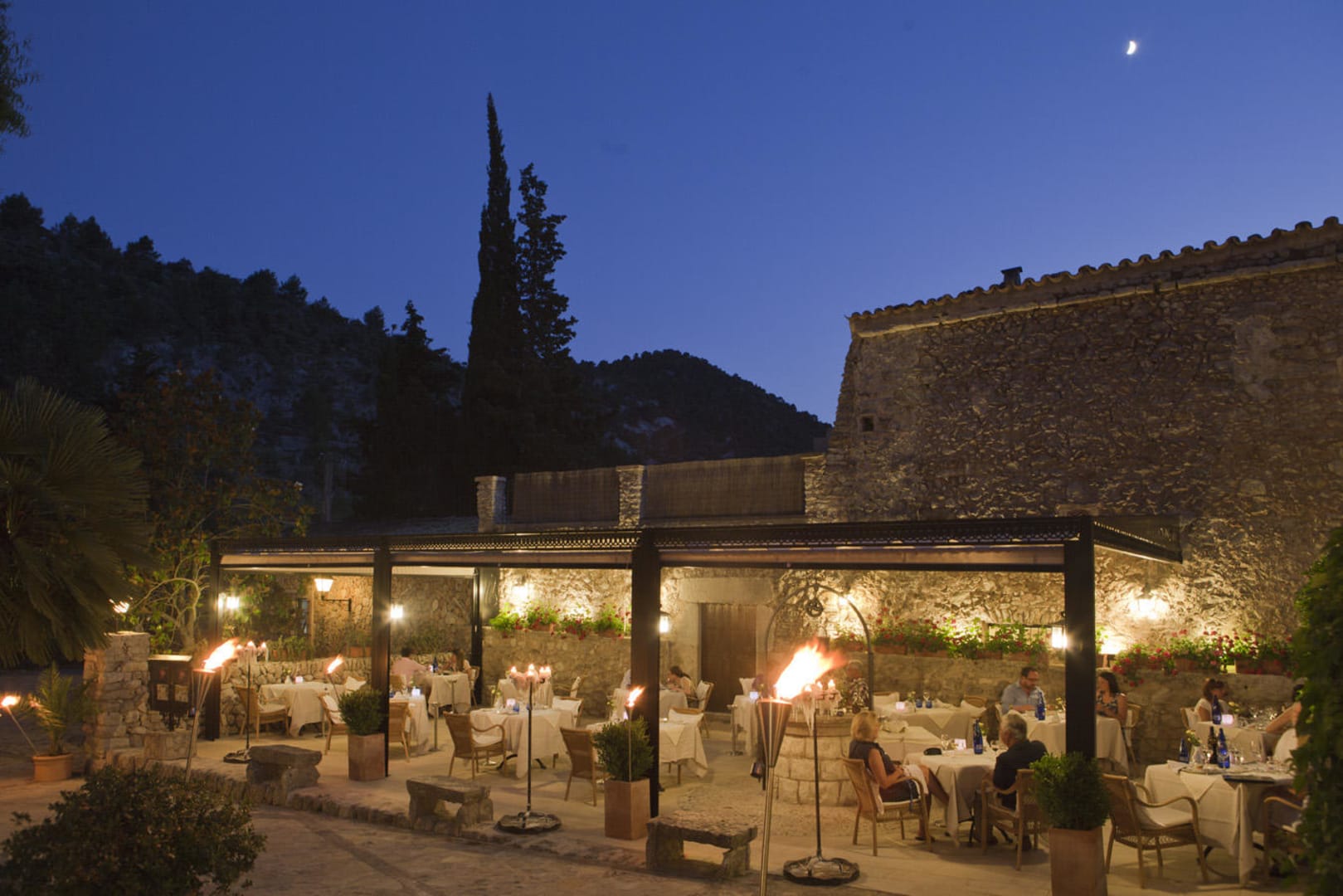 Terraza restaurante de noche