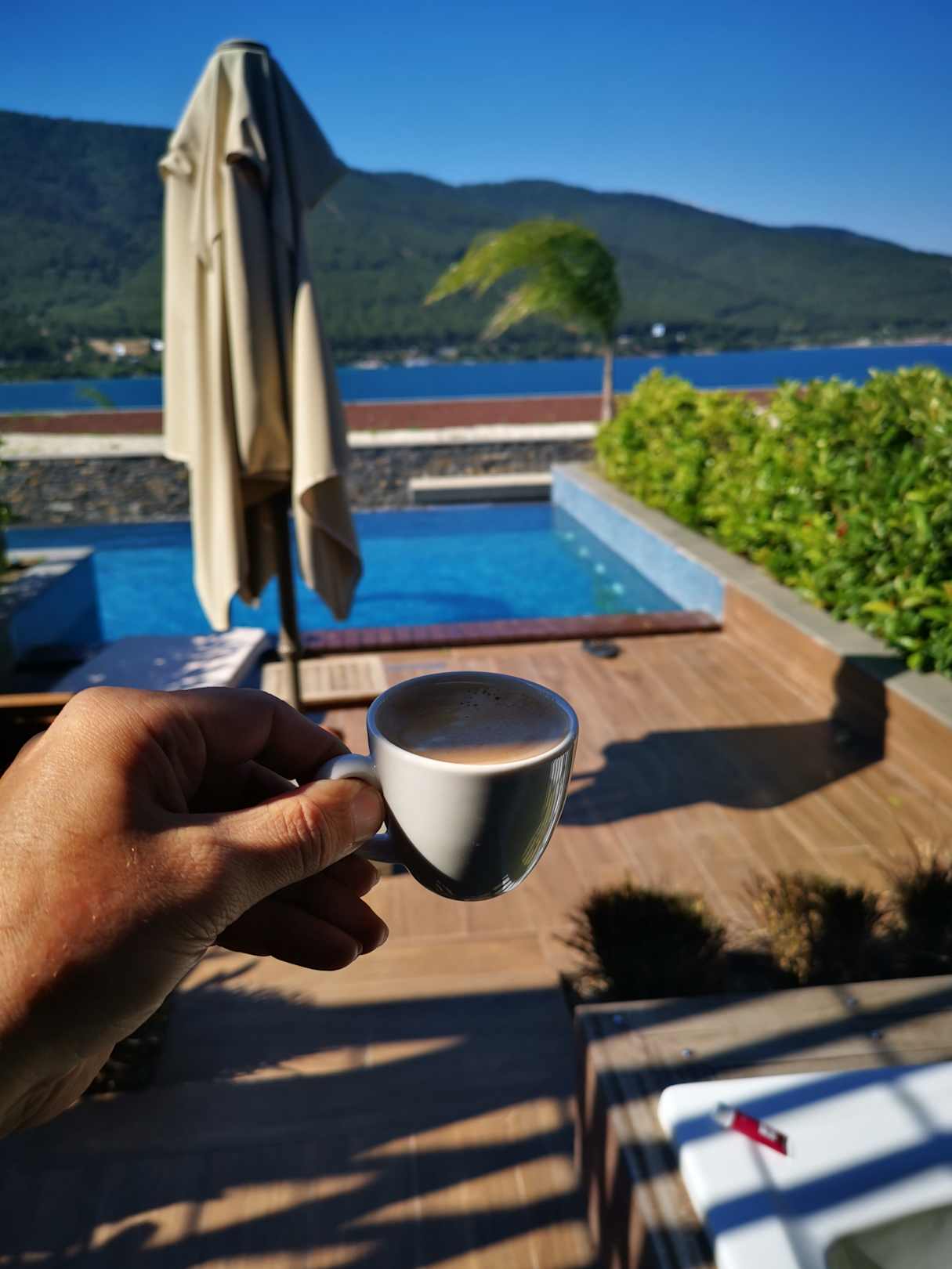 Blick von der eigenen Terrasse Swimup room