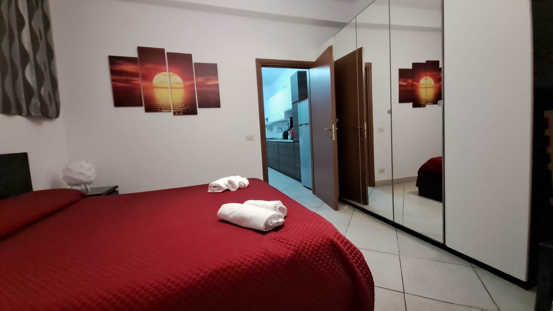 Blick vom Schlafzimmer in die Wohnküche - viel Stauraum im Wandschrank