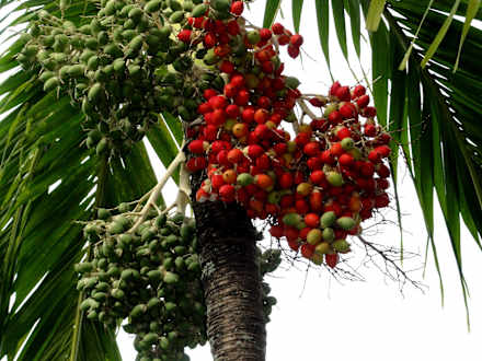 Fruchtstände einer Palme im Hotelgarten