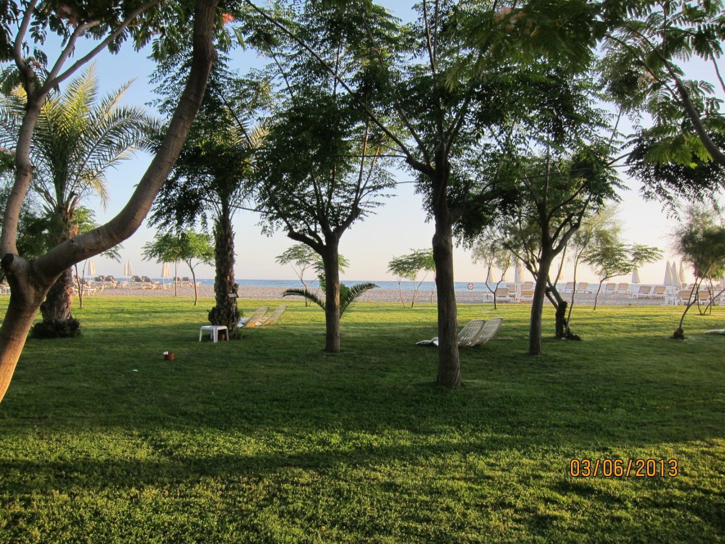 Direkt am Strand kann man unter Bäumen liegen.