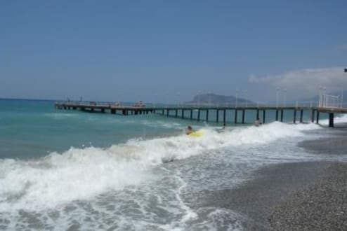 Badesteg ins Meer, da der Strand sehr steinig war(Badeschuh empfehlenswert.