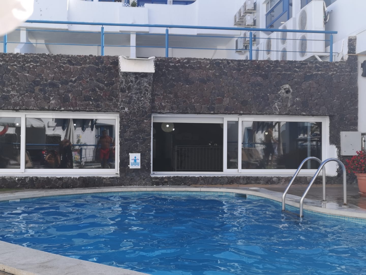 Pool ist genau vorm Restaurant, wenn das Fenster offen ist gibt es Clorwasser auf dem Teller.