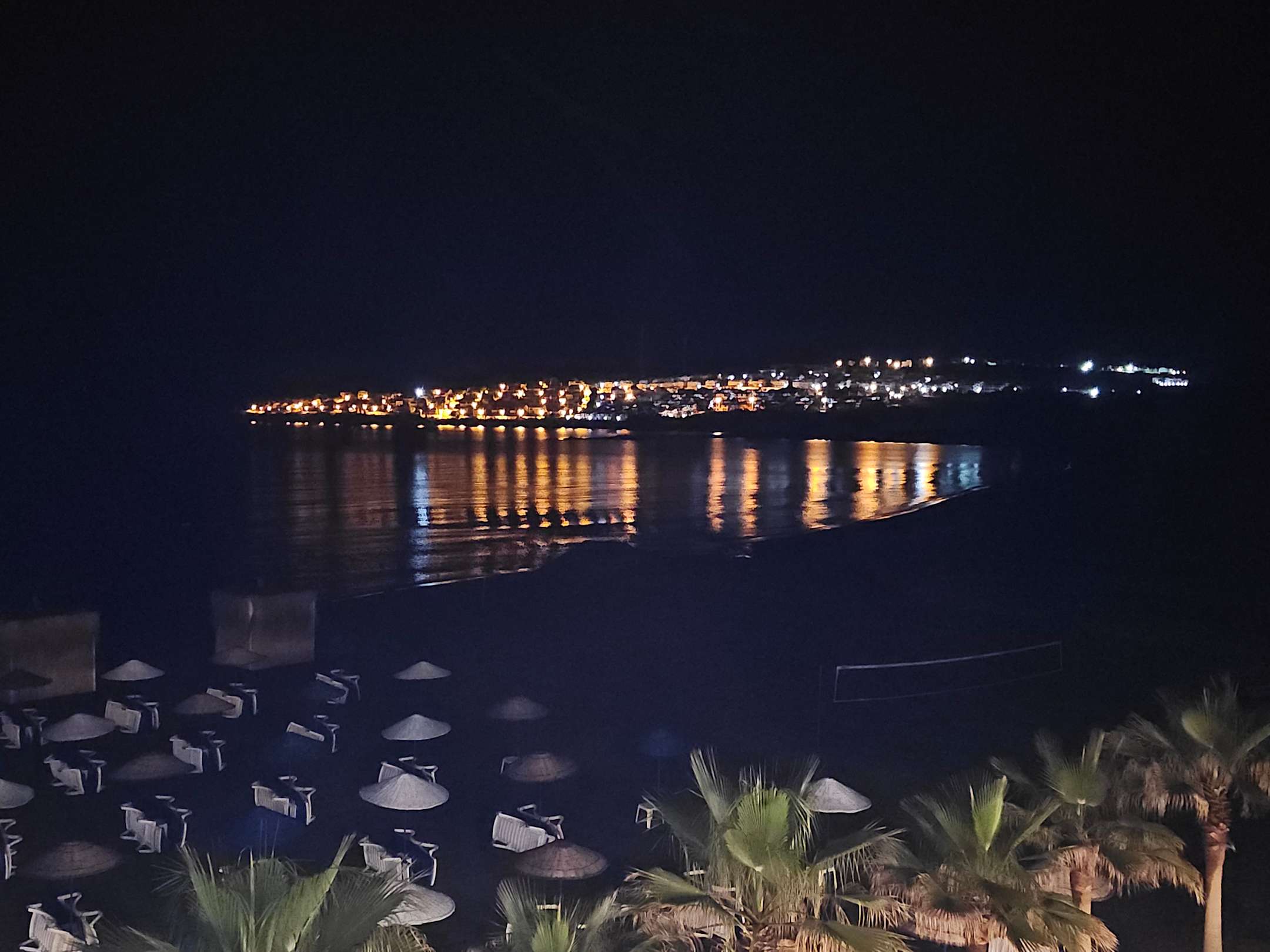 Blick auf Strand + Landzunge von der Roof Top Bar