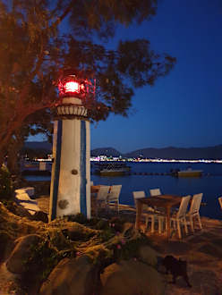 Romantische Aussicht am Abend auf das Meer vom Fischrestaurant