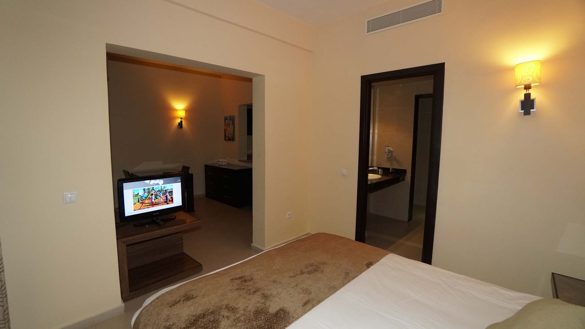 Schlafzimmer, Bad und Vorraum mit zwei weiteren Betten
