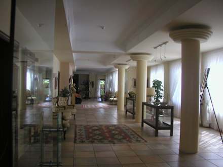Zeigt die geschmackvolle Inneneinrichtung. Hier der Gang von einer Bar zur anderen
