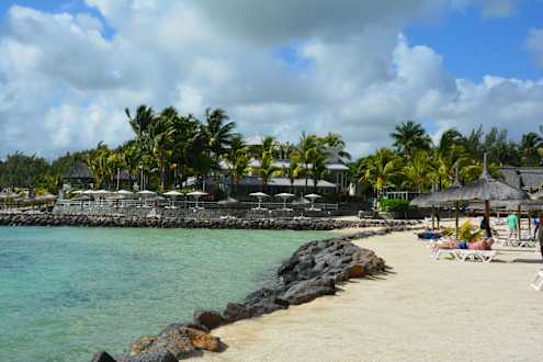 Strand mit Blick auf das Hotel