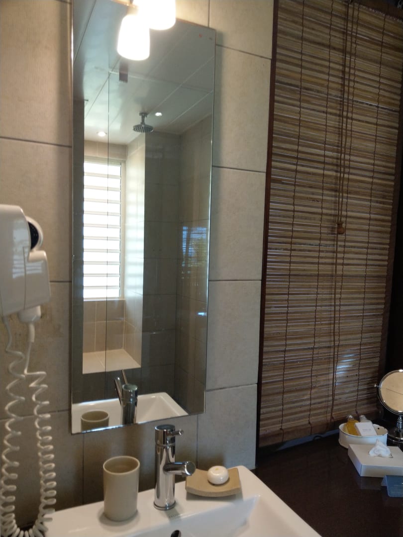 ZimmerBlick ins Bad (das Rollov erbirgt die große Öffnung zum Zimmer)