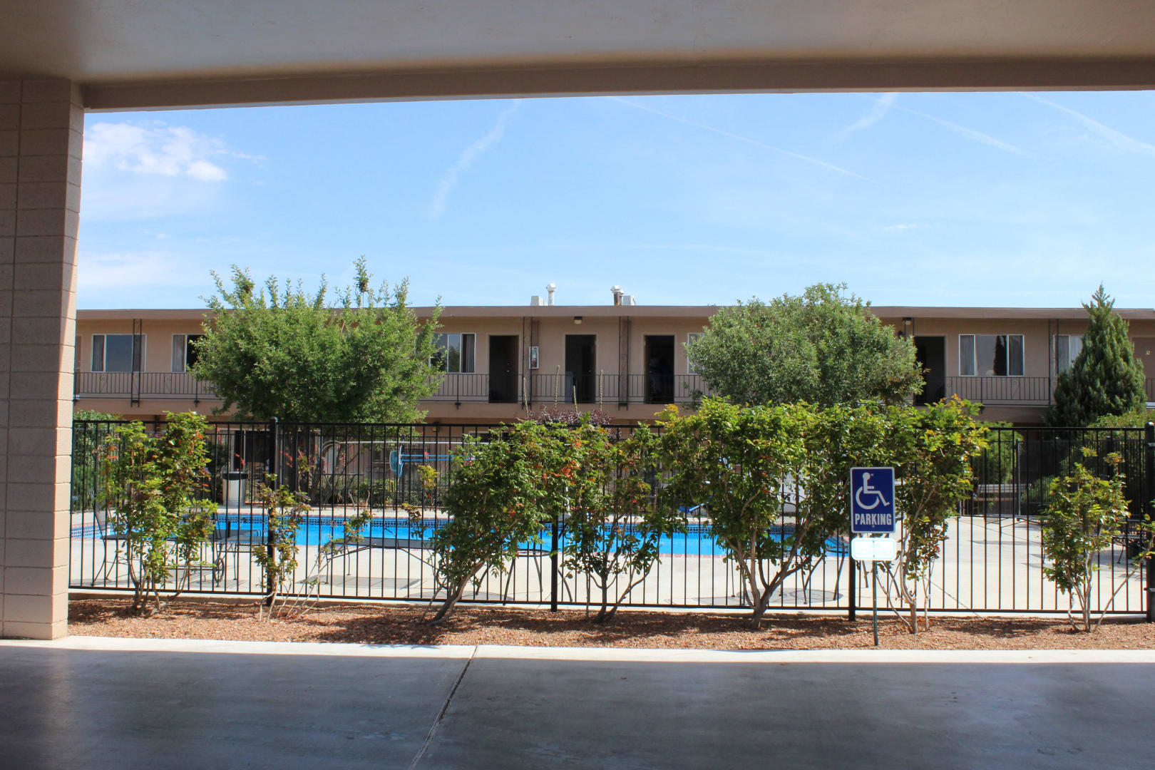 Blick von rezeption zum Pool