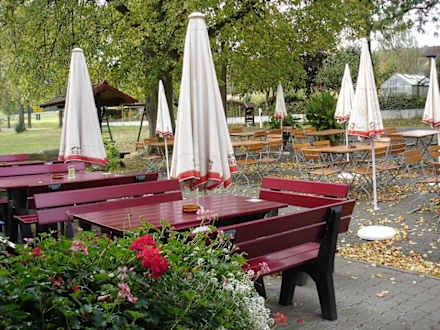 gemütlicher Biergarten vor dem Haus