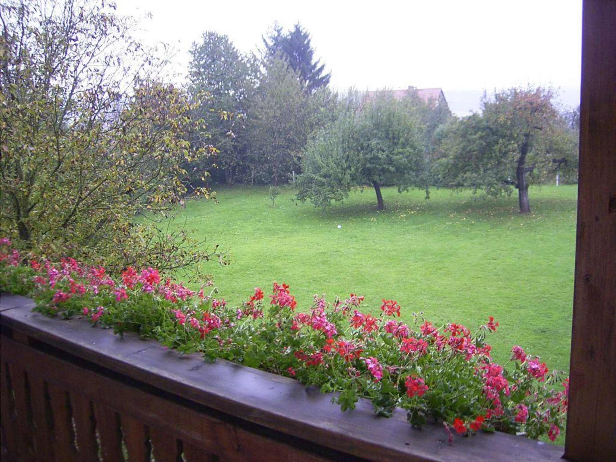 Blick vom Balkon auf Garten