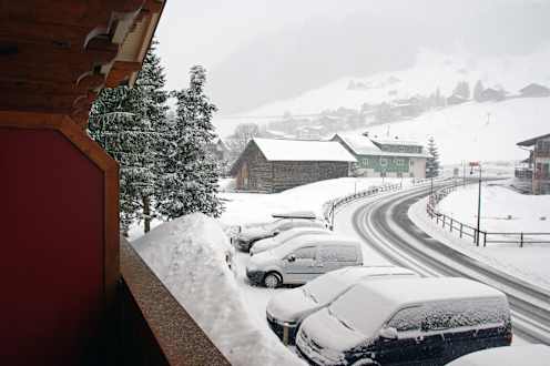 Ausblick vom Balkon (1.OG) es hat ein wenig geschneit. ;-)
