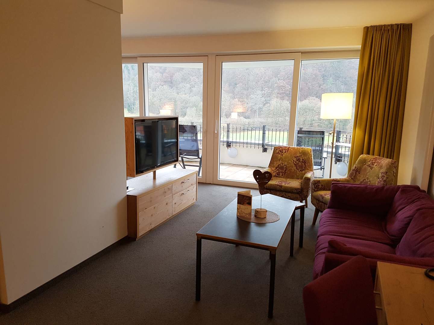 Wohnbereich der Turmsuite mit Balkon