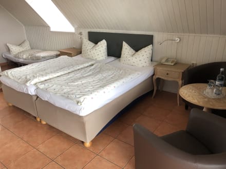 Doppelbett, Zustellbett und kleine Sitzecke