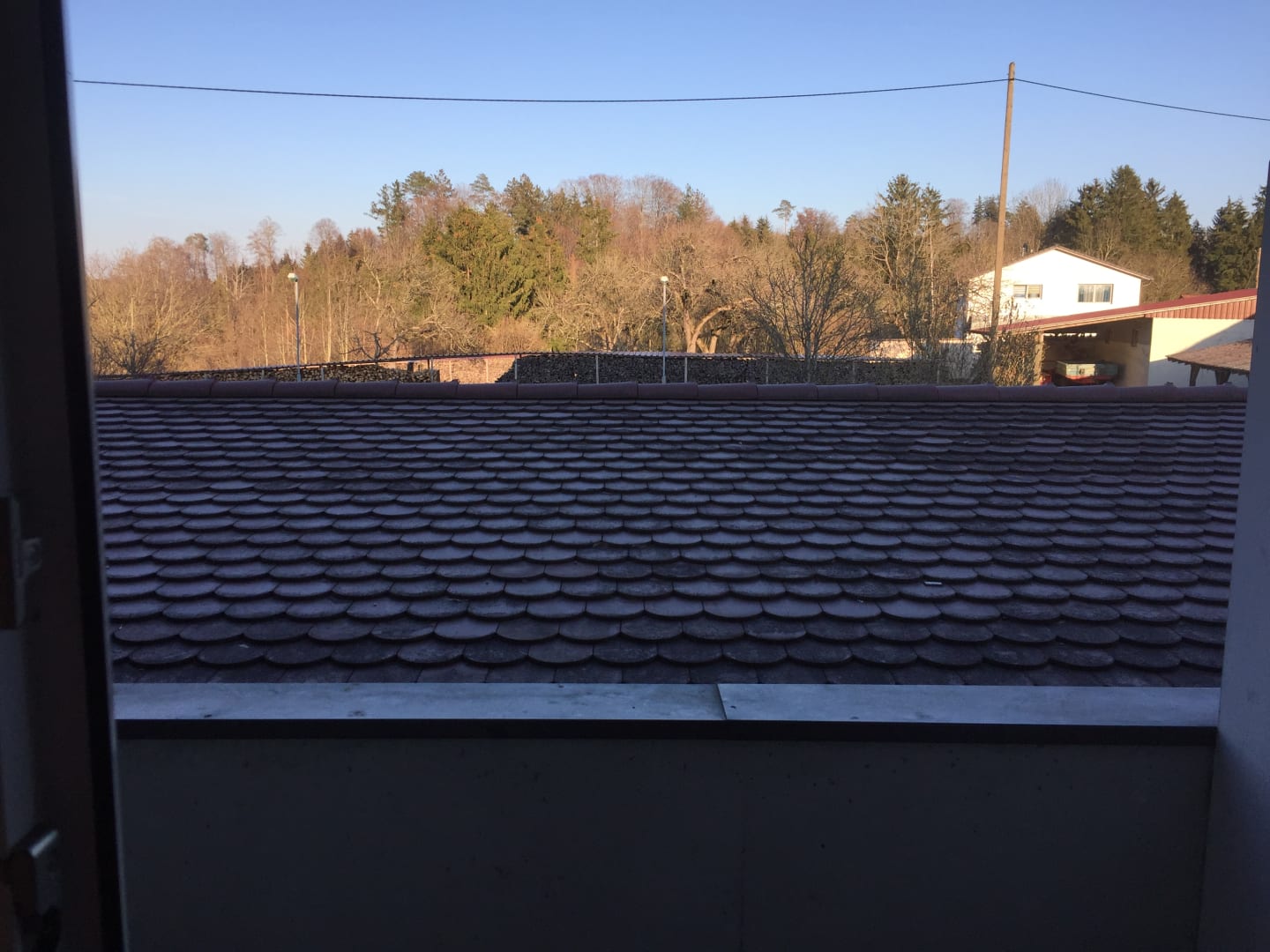 Blick vom Balkon auf ein Ziegeldach