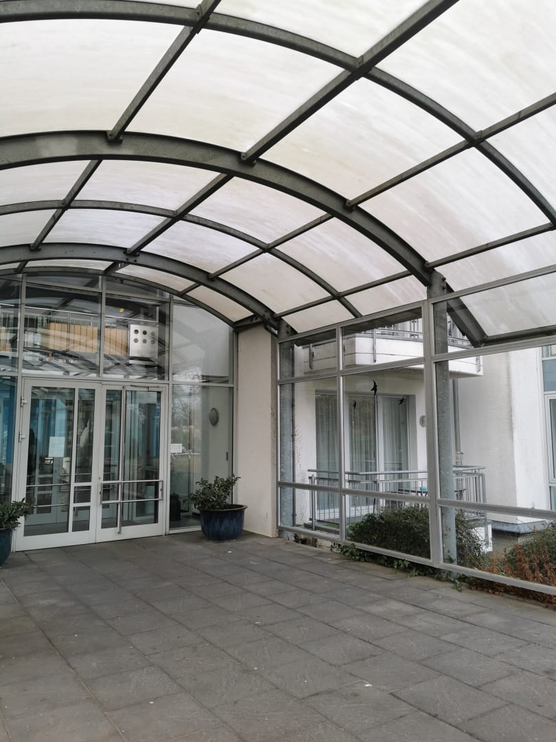 Zugang zum Bettenhaus. Im UG befinden sich Sauna und Schwimmbad und ab hier beginnt der Fahrstuhl zu allen Etagen. Massagen etc. haben wir nicht genutzt. Auf jeder Etage gibt es einen großzügigen Sitz-Bereich
