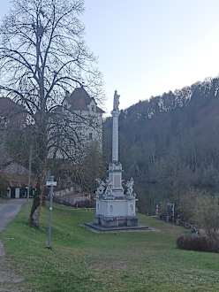 Namensgebende Mariensäule vor der Tür