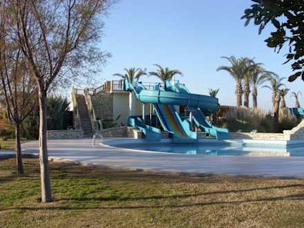 Im Januar nicht in Betrieb, im Sommer für die Kinder sicher toll: die Rutschen in den Kinderpool