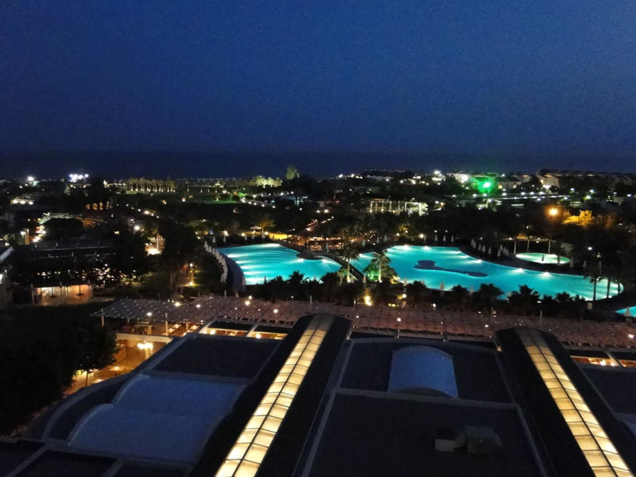 Blick in der Nacht über die Außenanlage Lara Barut Collection