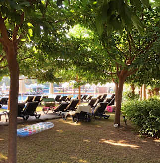Am Pool unter Bäumen liegen