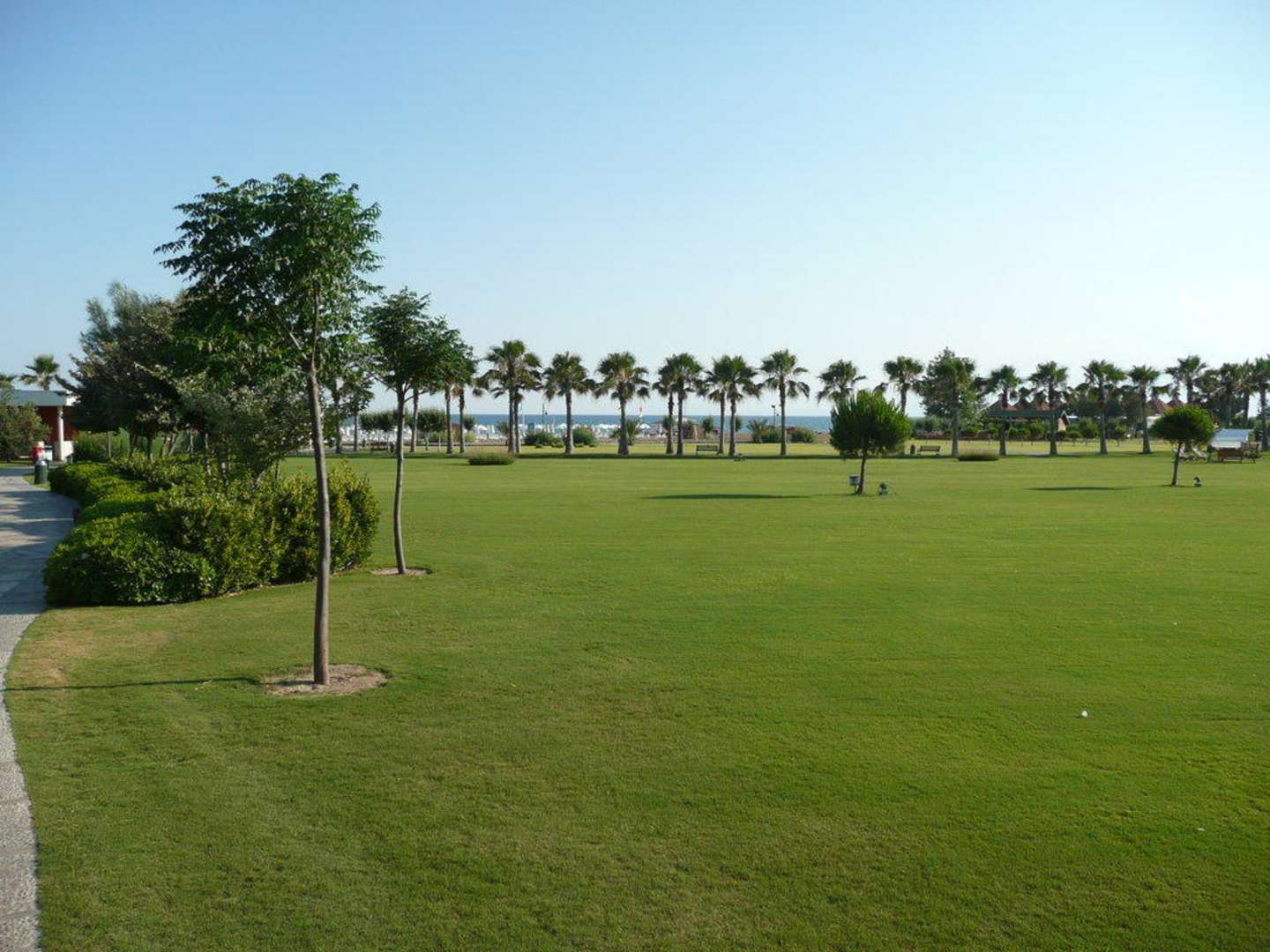 Blick in Richtung Strand/Meer durch die Palmenallee