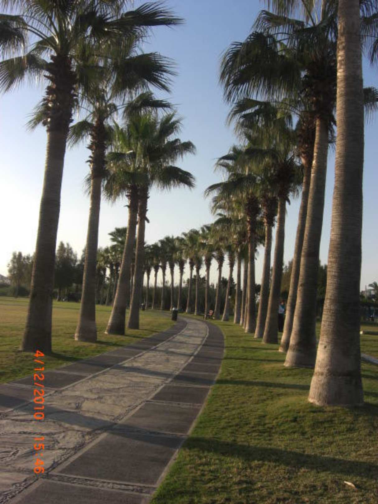Querweg mit Palmen besäumt, 50 Meter vor dem Strand