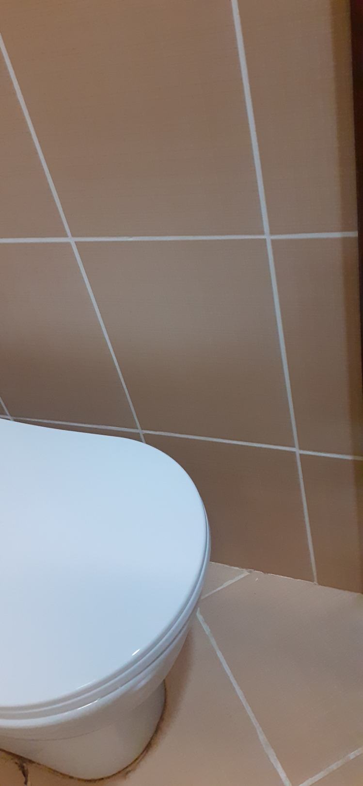 Der Toilettenpapierhalter befand sich an der Wand gegenüber der Toilettenschüssel.