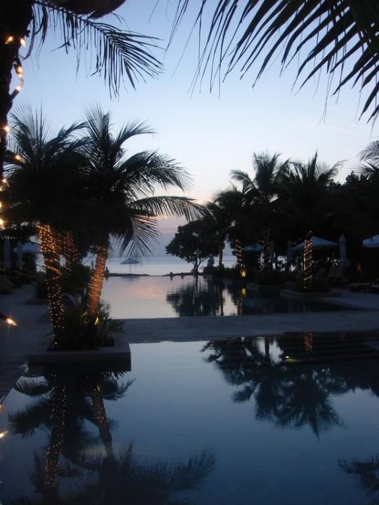 Blick über den Hauptpool am Abend - Richtung Meer