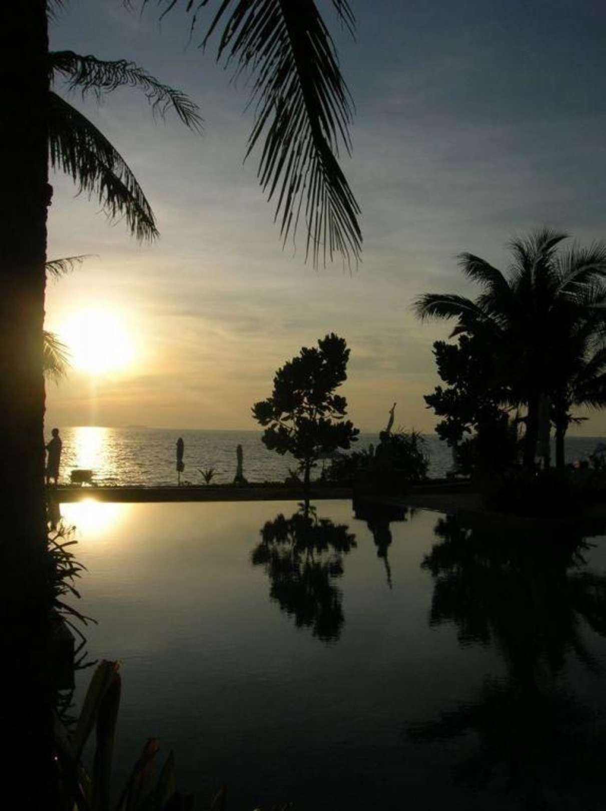 Blick über den Pool zum Meer