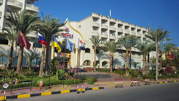 Das Hotelgebäude von der Hauptstraße ausgesehen