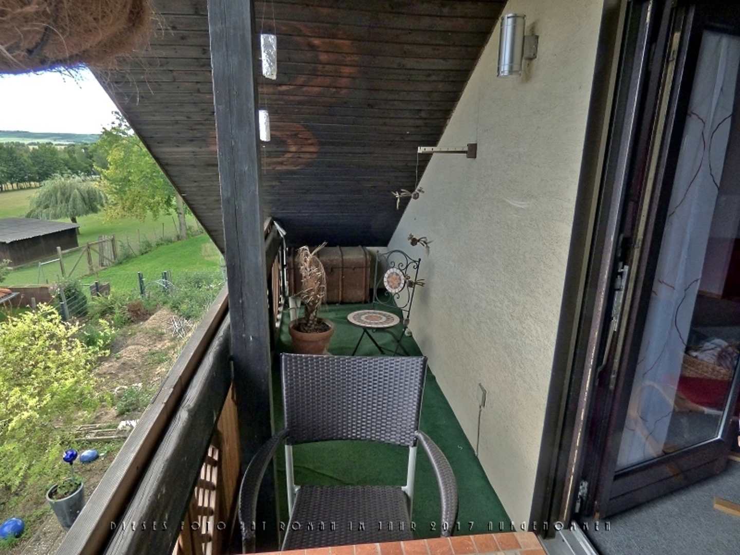 Balkon, zur rechten Seite. Links oben im Bild ein Teil des Rehgeheges.