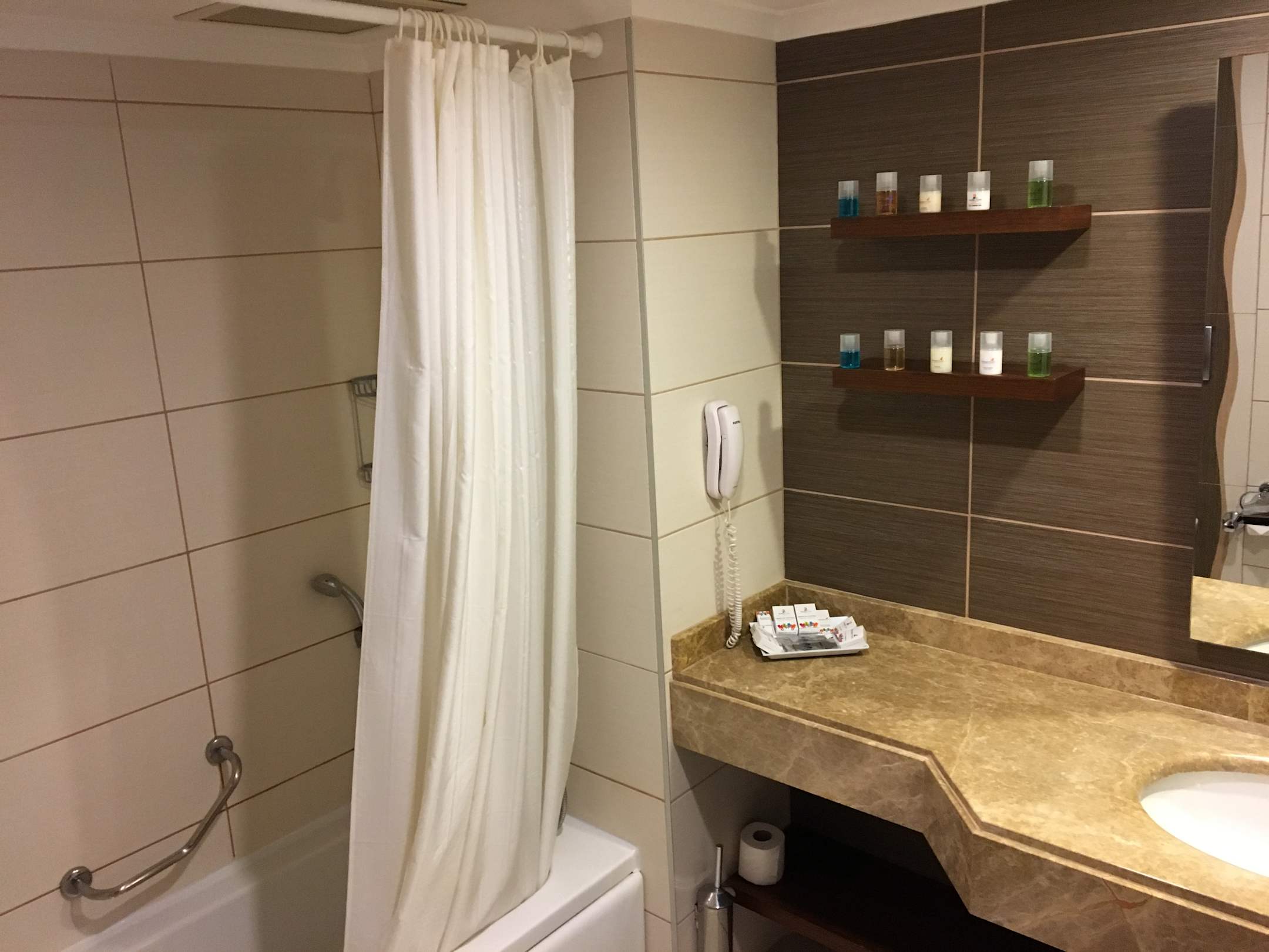 Mit Badewanne und großer Auswahl an Pflegeprodukten