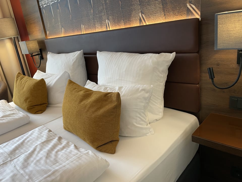 Bequemes Bett mit guten großen Kissen