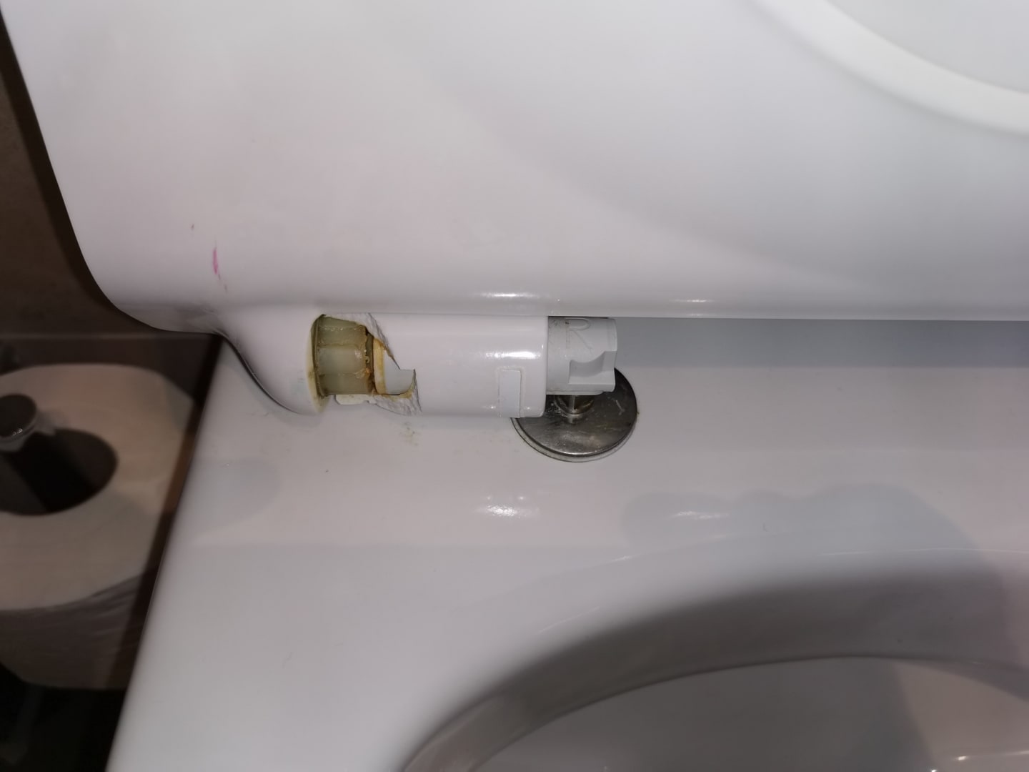 WC-Scharnier zerbrochen - kein einladender Anblick!