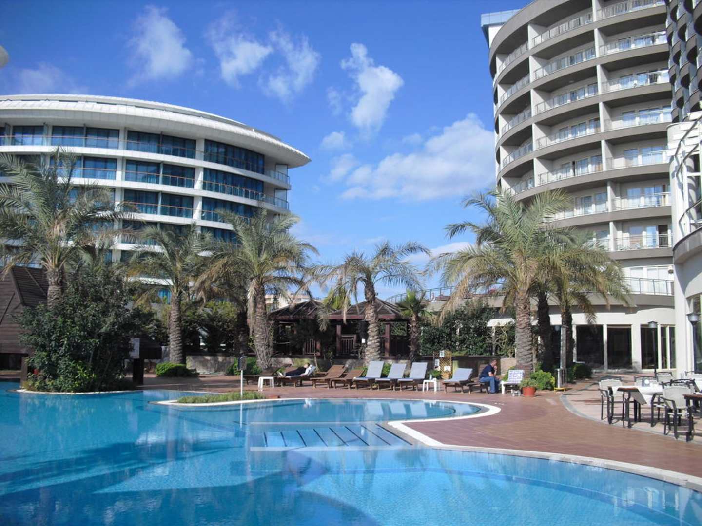 Blick von der Anlage aufs Hotel