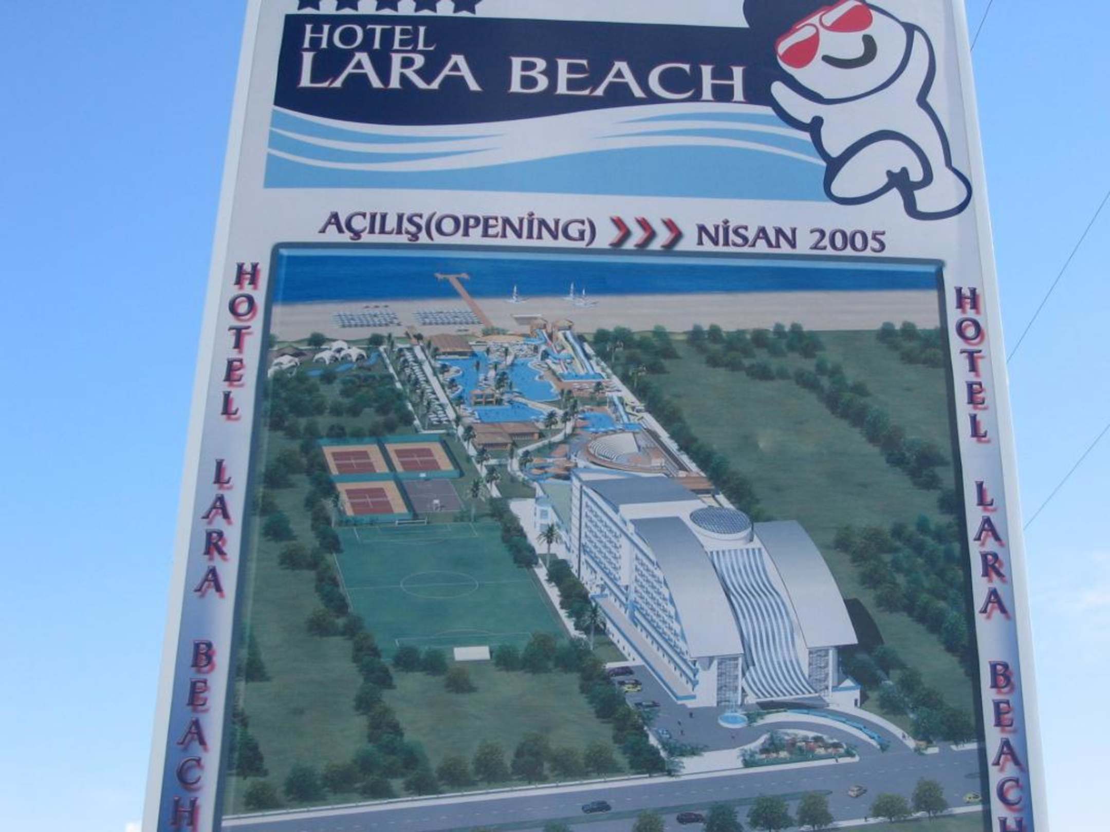 Plakat mit Zeichnung vom Lara Beach Hotel