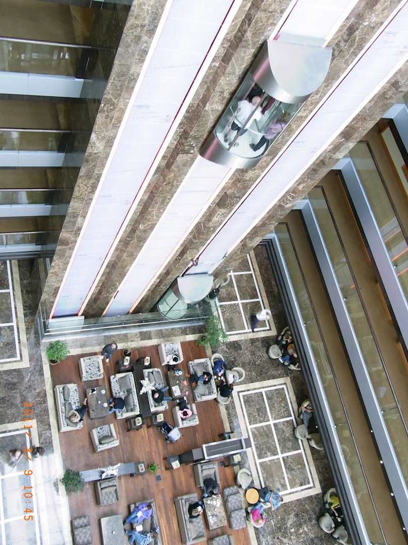 Aufzüge abends mit Beleuchtung
