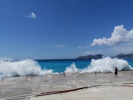 Hohe Wellen brechen am Landeplatz der Paragleiter im Familie Bereich
