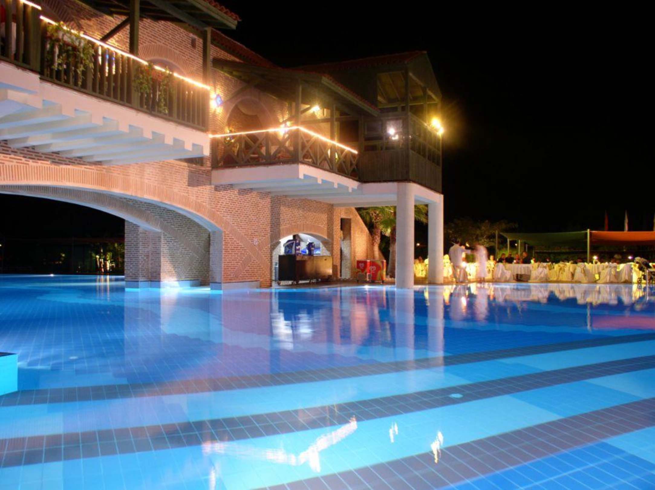 Italienisches Restaurante & Pool bei Nacht