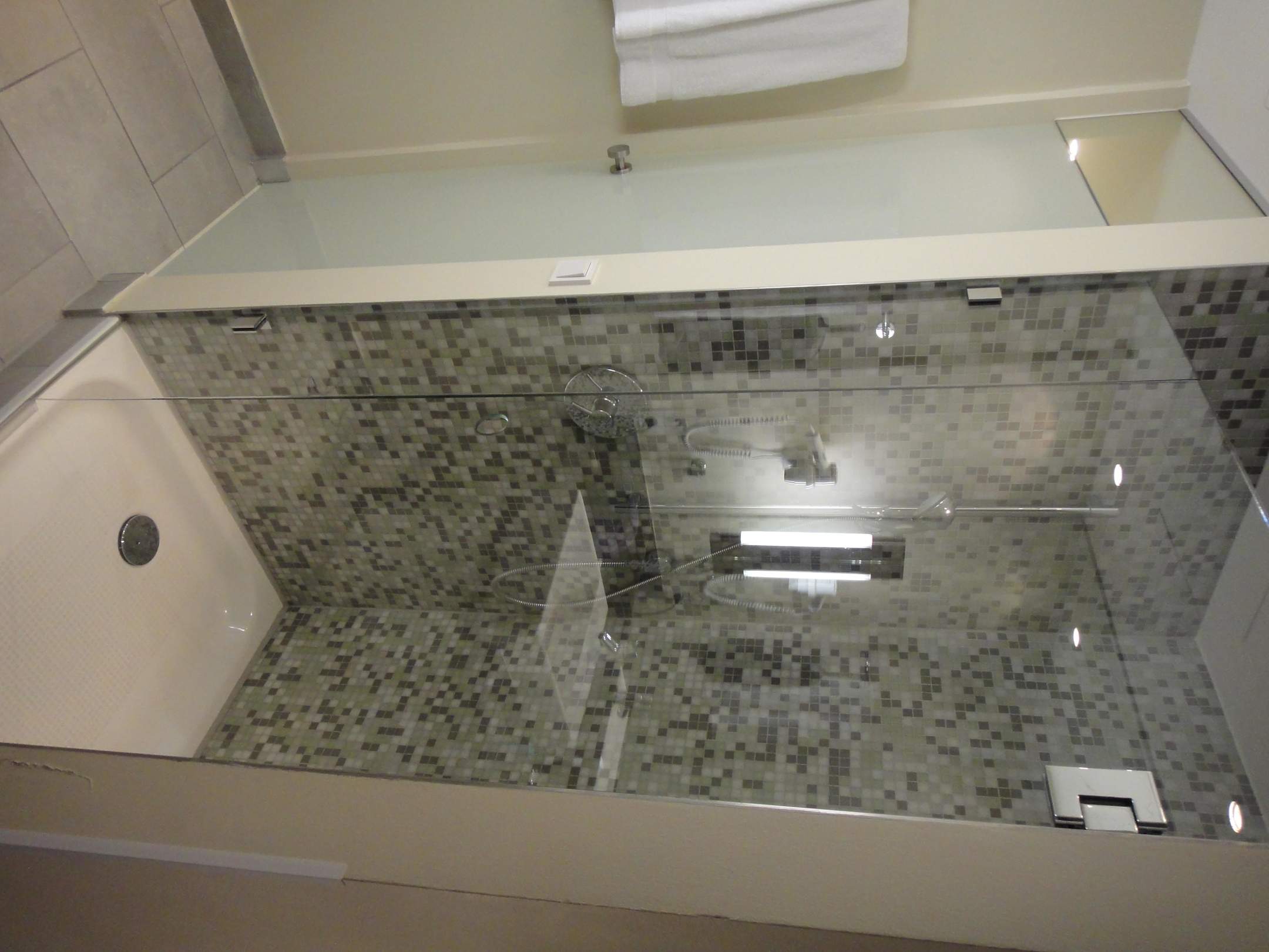 Dusche und Tür zum WC