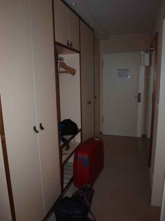 Blick von der Sitzecke zum Ausgang des Zimmers, welcher sich gerade aus befindet. Links der Kleiderschrank, rechts geht es ins Badezimmer.