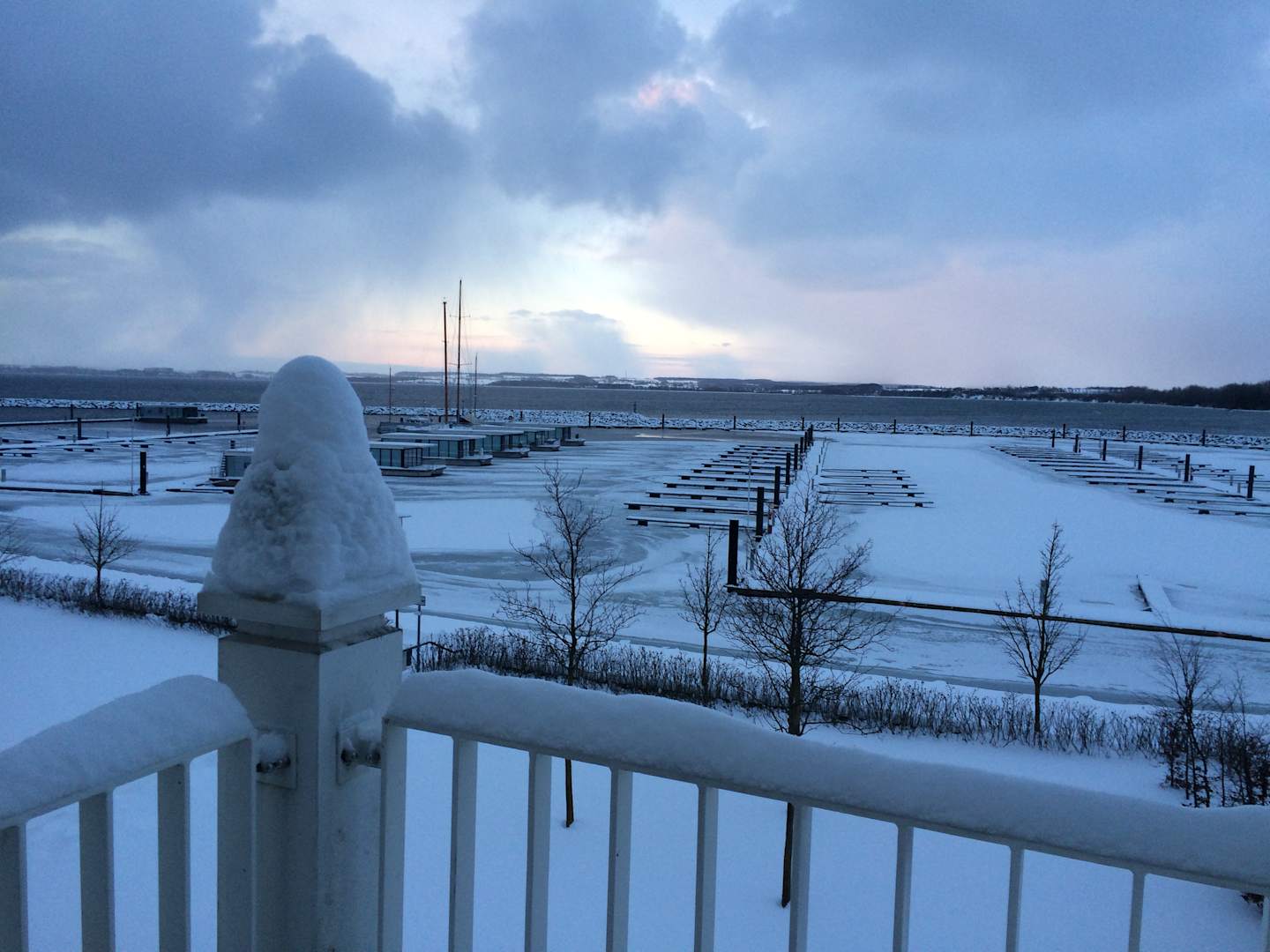 Blick aus unserem Zimmer auf den Hafen und Ostsee.