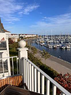 Blick vom Balkon auf den Yachthafen